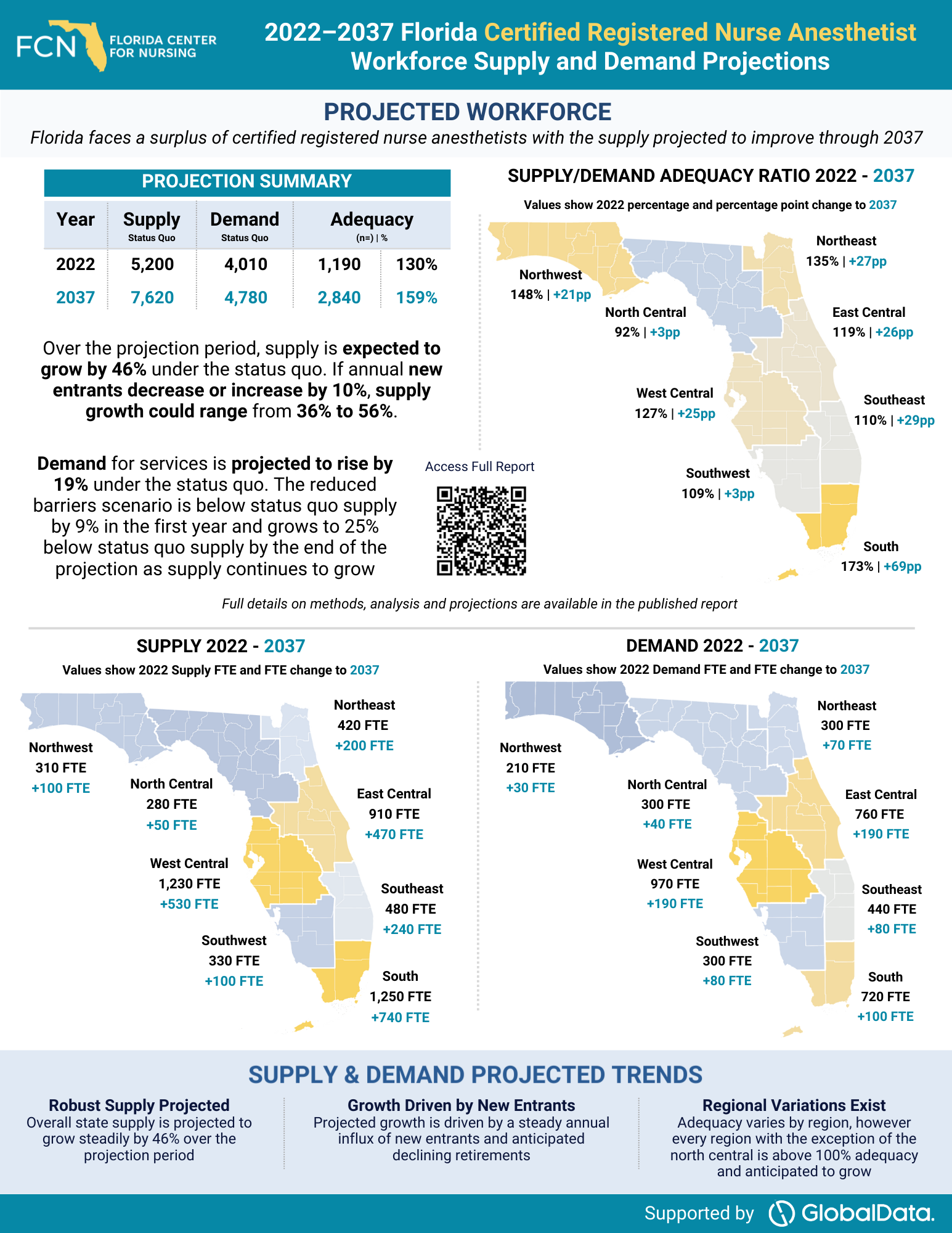 This report examines Florida’s health workforce, analyzing current trends to project future workforce needs with data gathered by one of the leading experts in workforce modeling, GlobalData.